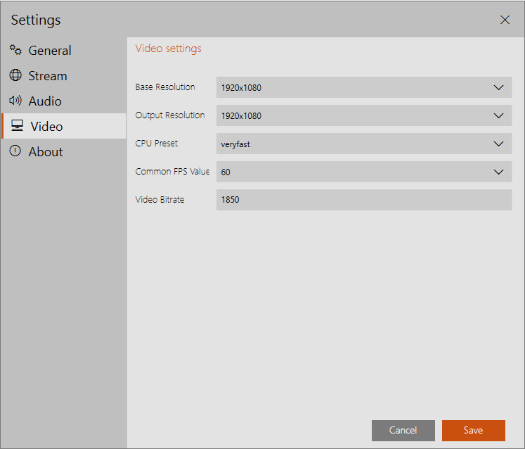 - Common FPS Value. Here you can choose the common FPS value for your stream.