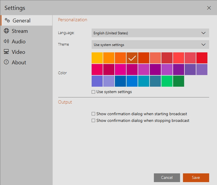 Here you can choose whether to show or not to show you confirmation dialog when you start or stop the broadcast.