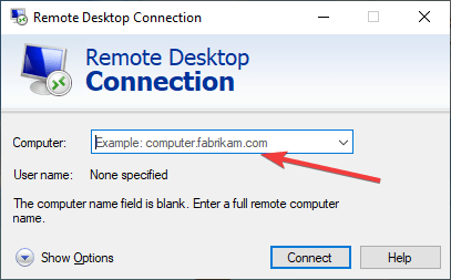 - In the window that appears, enter the IP of the virtual machine and click “Connect”.