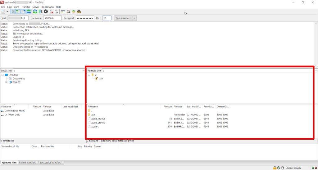 Connecting to FTP using “FileZilla Client”
