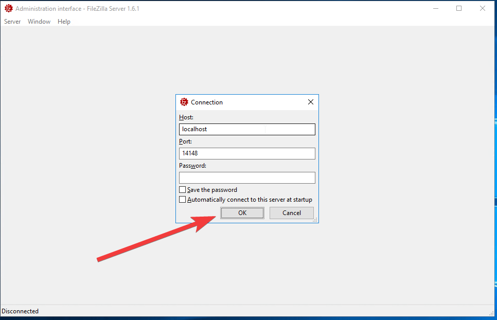 - Start up the Administer FileZilla Server with the shortcut on your desktop (if it does not start when connected)