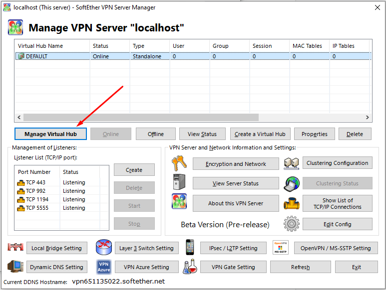 - Run the “SoftEther VPN Server Manager”.