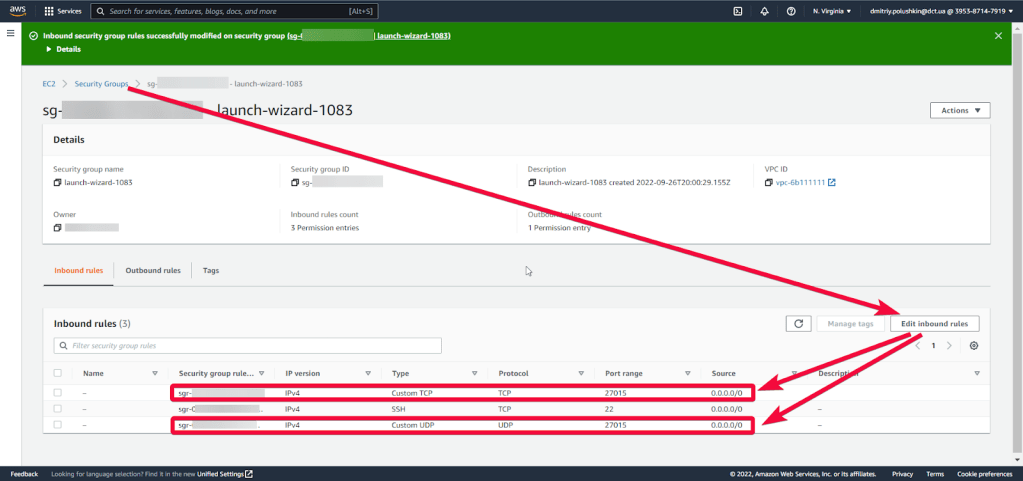 For the server to be usable, open TCP and UDP port 27015 in your VM’s security group.