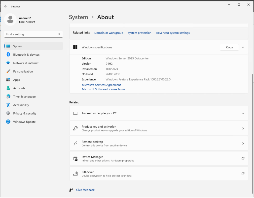Configuration and Connection to Datacenter Base Image on Windows Server 2025 Azure Edition