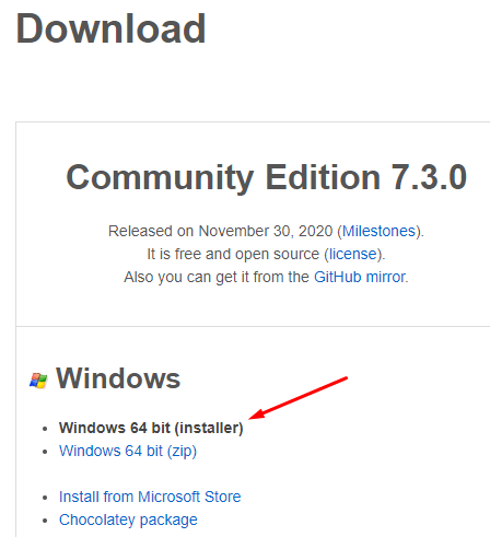 - Download the software distribution that is convenient for you, Windows 64 bit (installer) for example. (A newer version of DBeaver may be released. All actions will remain the same for the higher version.)