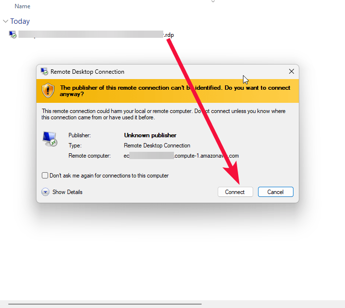 - To connect to the Server, you should generate a “Private Key” in advance. This can be done using Guidance on usage. To connect to the virtual machine, click the Remote desktop file from step 10 of the Guidance on usage