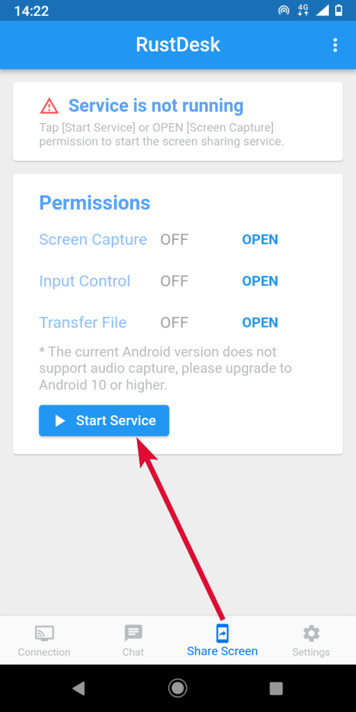 - Then tap ‘Share Screen ⇒ Start Service’