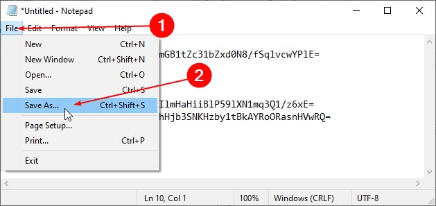 - Create a blank text document and paste the copied part of the code into it using Ctrl + V.