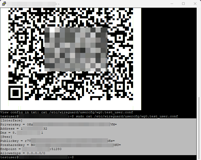 $ sudo cat /etc/WireGuard/usercfg/wg0.test_user.conf