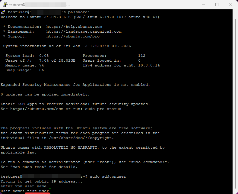 - To manage the WireGuard server, you need to connect to the VM.