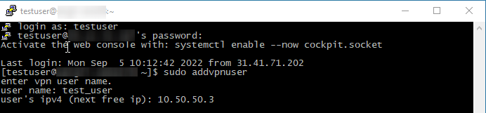 $ sudo addvpnuser