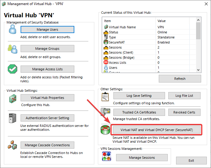 - Open “Virtual NAT and Virtual DHCP Server (SecureNAT)”: