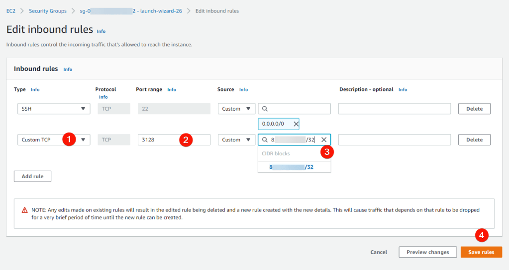 Connect to Squid: Protected Proxy Server on Linux CentOS 7.9 using Windows Settings on Amazon