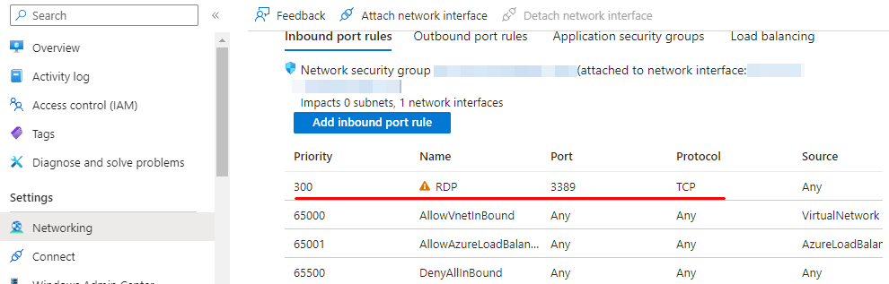 - For proper functionality of the VM, it is necessary to open port 3389 (TCP) in the network properties of the Azure Firewall.