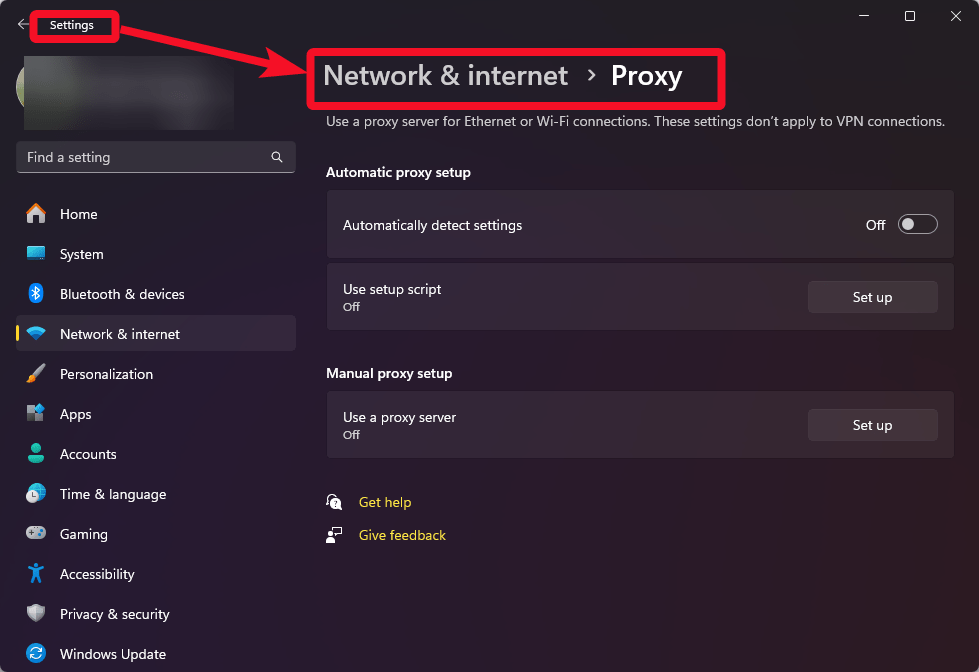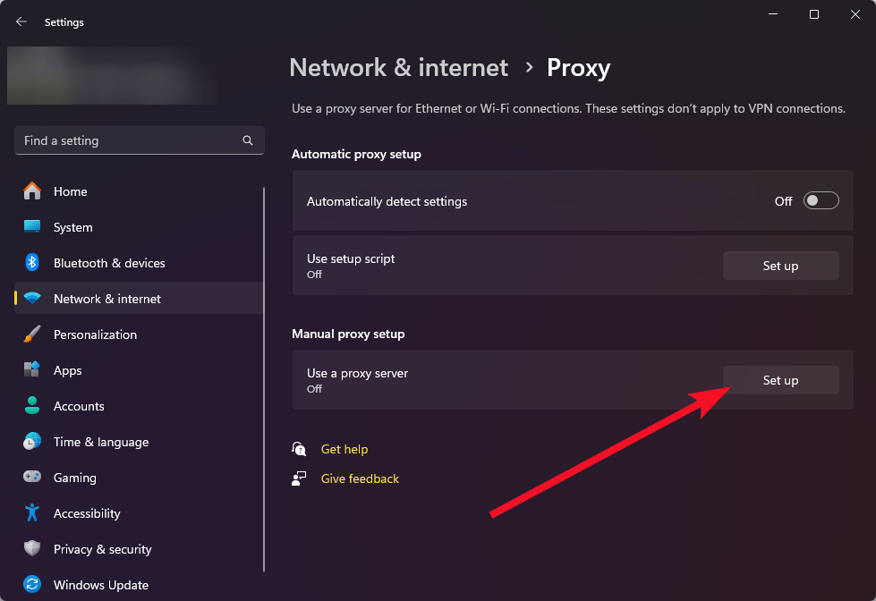 - To use the proxy server through the built-in Windows tools, open Settings > Network & Internet> Proxy
