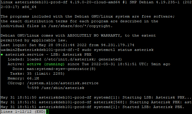 sudo systemctl status asterisk