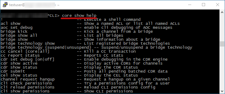 - To view the “Settings” or “Help” in the console of the asterisk service, you can use the commands: