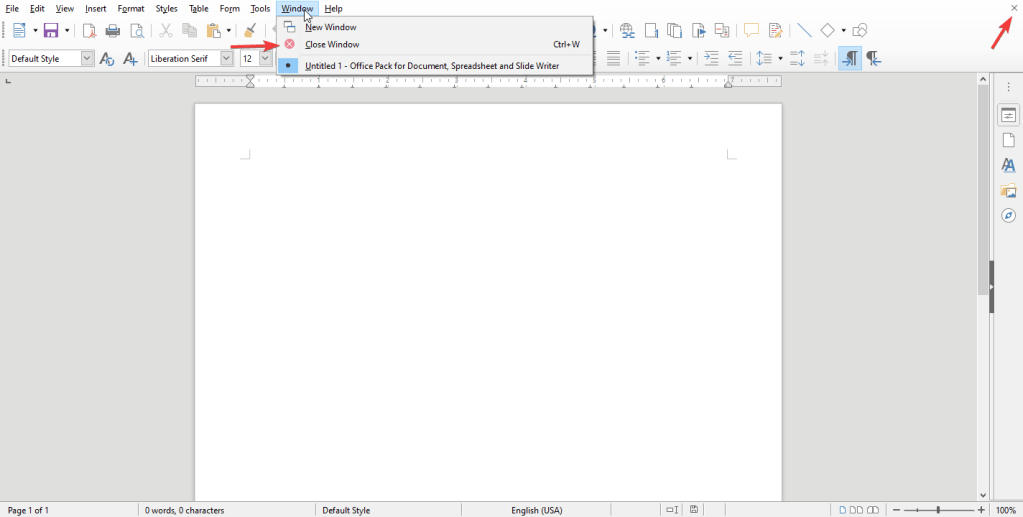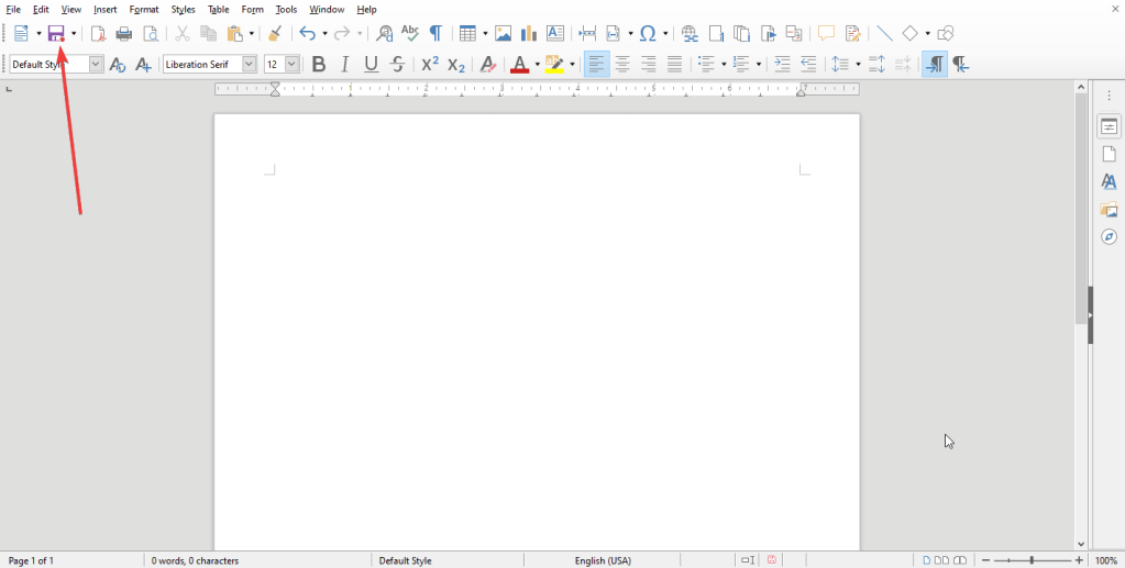 In this case, this is a Writer Document window. By pressing a button highlighted with an arrow you can save (rewrite) a document.